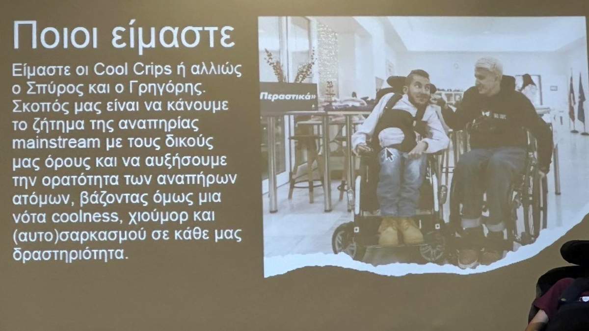 Η εμπειρία ήταν μοναδική και βιωματική, μέσα από την αφήγηση της ομάδας Cool Crips ("Αναπηρία και Φύλο – Η ιστορία της κουτσής Μαρίας") που αποδομεί τα στερεότυπα και μεταφέρει τα μηνύματα με ένα ξεχωριστό ανατρεπτικό λόγο, χιούμορ και (αυτο)σαρκασμό.